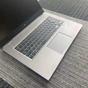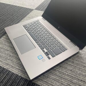 Toàn bộ bề mặt máy là lớp sơn nhám tĩnh điện màu xám. Phần logo được thiết kế giống với Hp envy 13. Ngay cả đường kẻ ngang trên nắp máy cũng cùng kiểu thiết kế của Hp envy 13 giúp tạo điểm nhấn cho chiếc HP ZBook Studio G5 này.