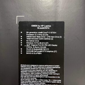 Laptop HP Omen 15 Core i7 8750H (~4.1Ghz)/ Ram 16Gb/ SSD 256Gb + HDD 1Tb/ VGA NVIDIA® GeForce® GTX 1060/ LCD 15.6” FHD 144Hz